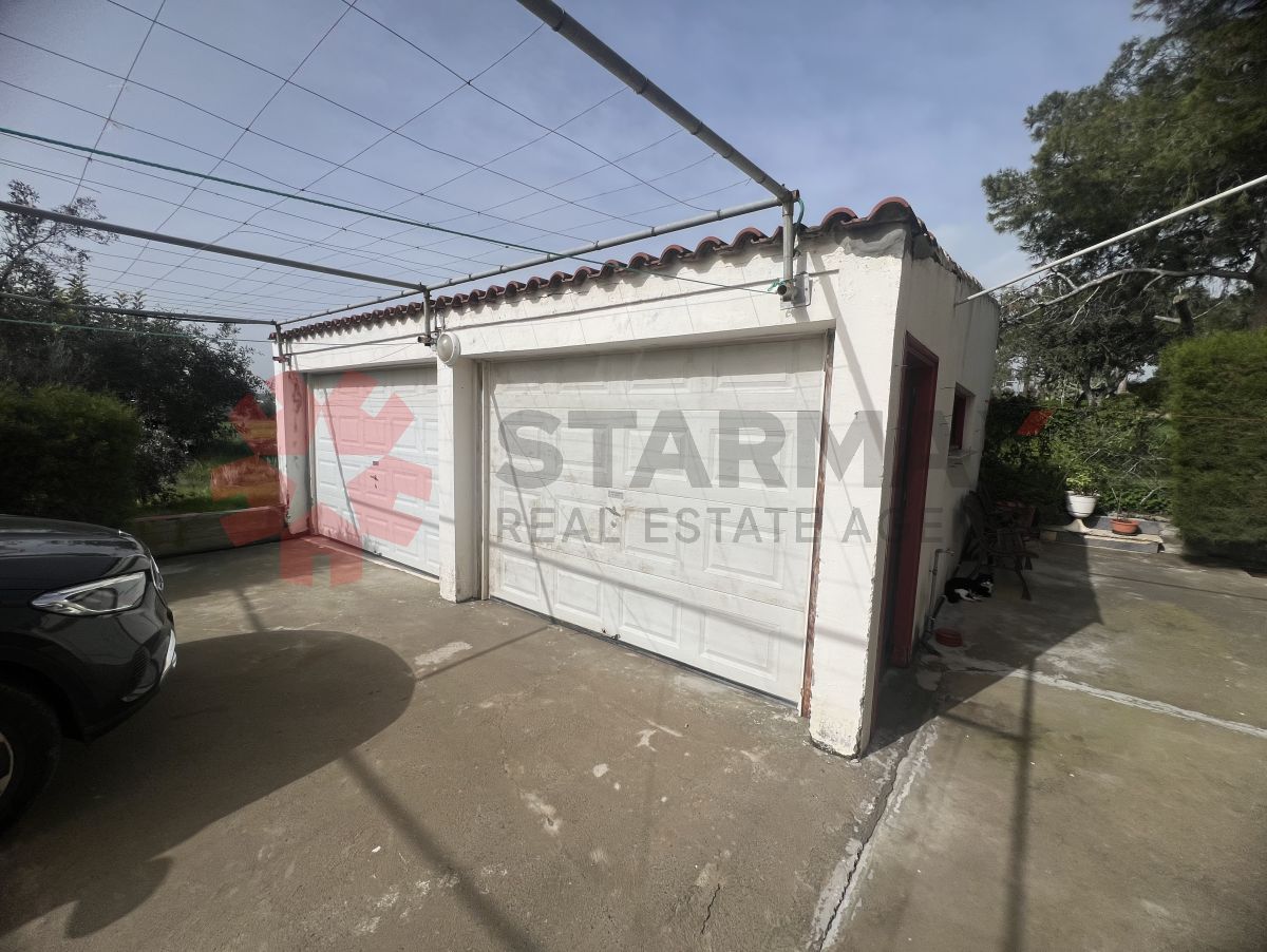 The property features 160 sqm of internal living space, including two comfortable bedrooms plus an additional smaller room, ideal as a home office, guest room, or playroom. The heart of the home is a spacious open-plan living, dining and kitchen area, complemented by a separate kitchenette, a daily family room, storage areas, and a covered garage.