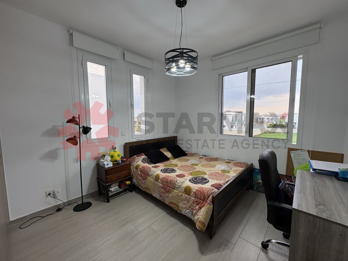 This beautifully designed and spacious three-bedroom house is located in the popular and rapidly developing area of Livadia, close to all amenities and just a 5-minute drive from the beach.