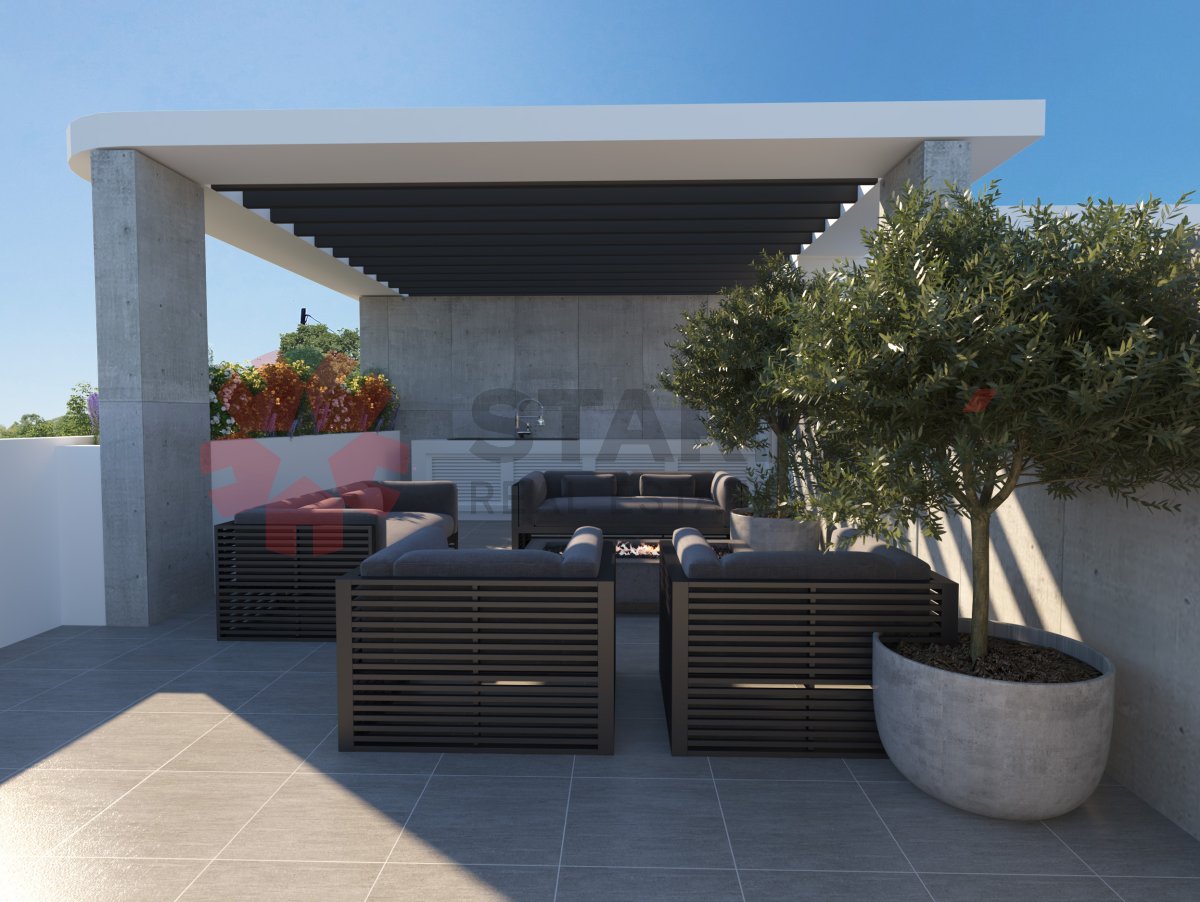The apartment has 2 bedrooms and 2 bathrooms and it is set on the 2nd floor of the building. It has internal areas of 75 square meters, covered veranda of 18 sq.m. and a private roof garden of 52 sq.m.